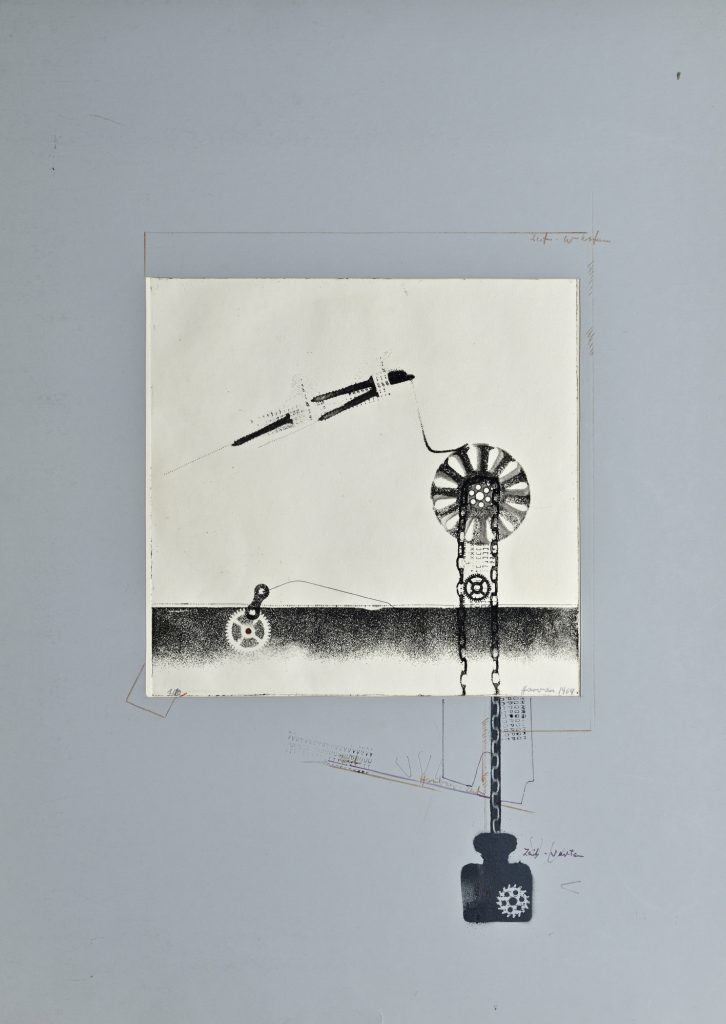 Harvan-Zeit, 1969, Collagen mit Schaumstoff, Sprühtechnik, Zeichnung, 49×59 cm